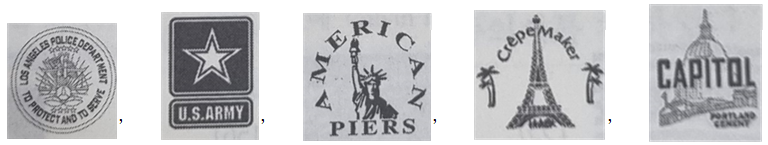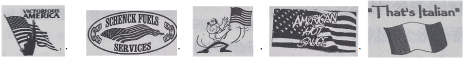 국기 등과 다른 문자나 도형이 결합하여 상표가 구성된 경우는 아래와 같다.